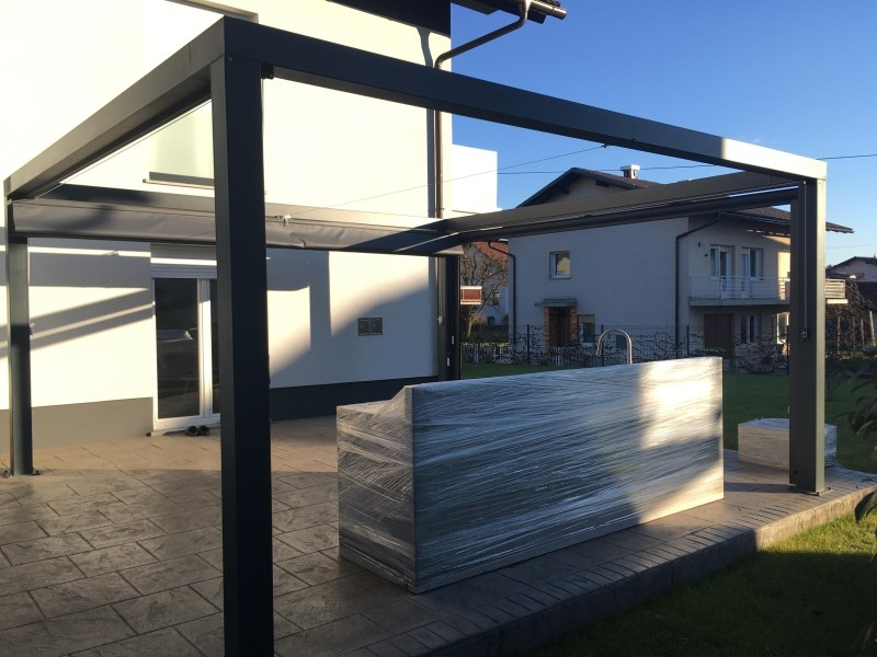 • Zložljivi nadstreški so primerni za tiste, ki imate radi prilagodljivost. Taki nadstreški se zložijo, ko jih več ne potrebujete in ponovno raztegnete, če želite zaščito pred soncem ali dežjem.